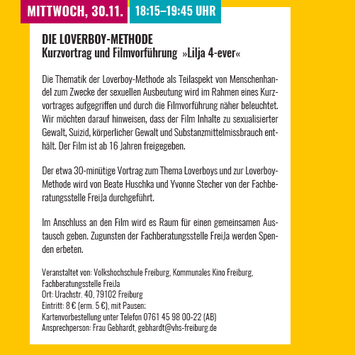 Am Mittwoch den 30.11. findet im Kommunalen Kino Freiburg ab 18:15 Uhr eine Veranstaltung dazu von unserer Fachberatungsstelle FreiJa statt.
