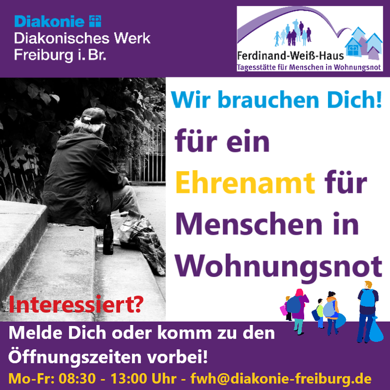 Das Ferdinand-Weiß-Haus ist eine Tagesstätte für Menschen in Wohnungsnot. Wir suchen offene Menschen, mit einem respektvollen Umgang, Wertschätzung und Interesse für andere Lebensentwürfe.